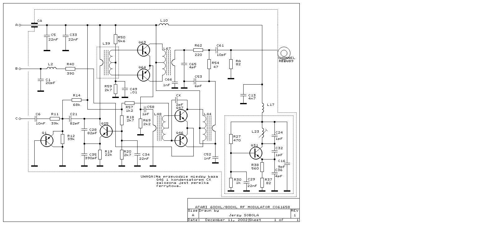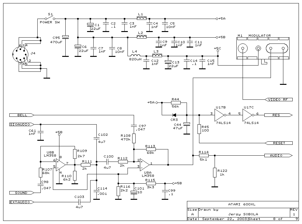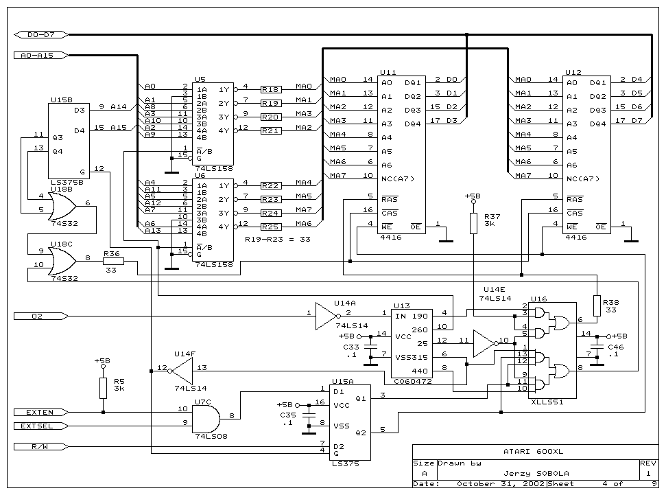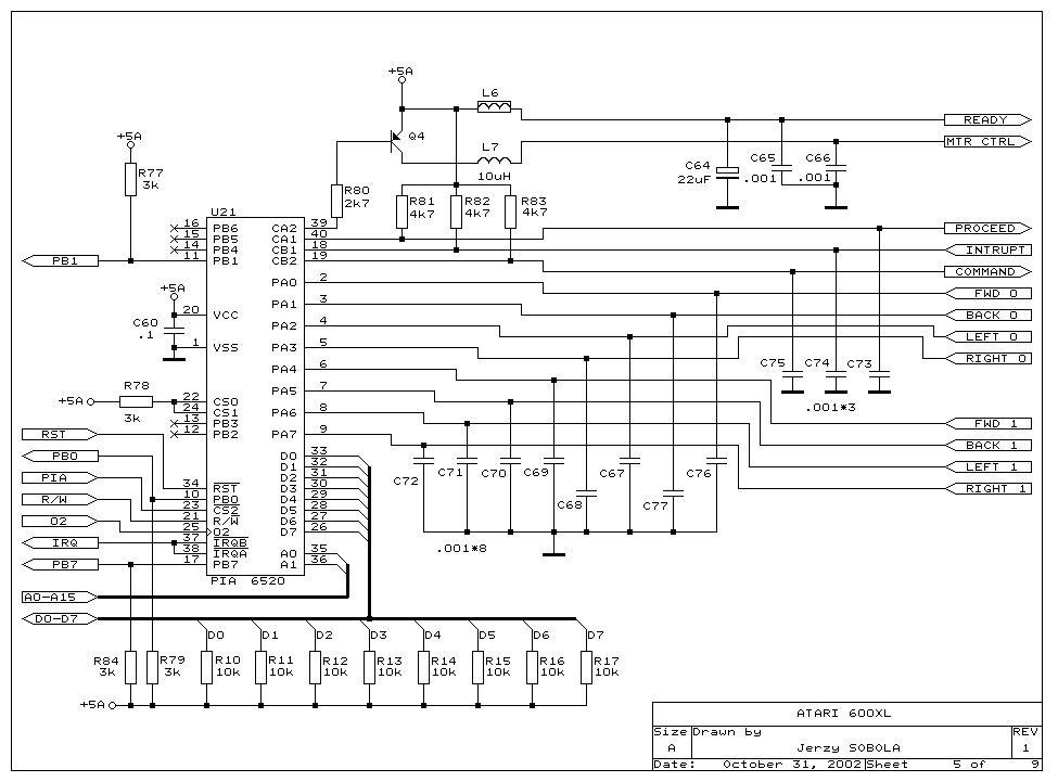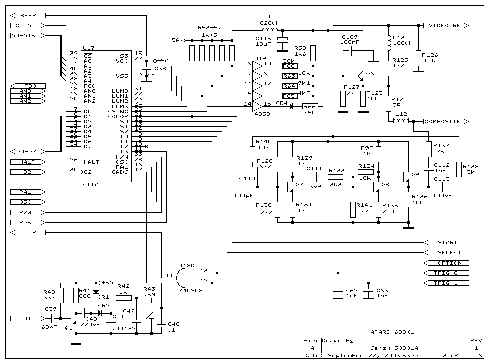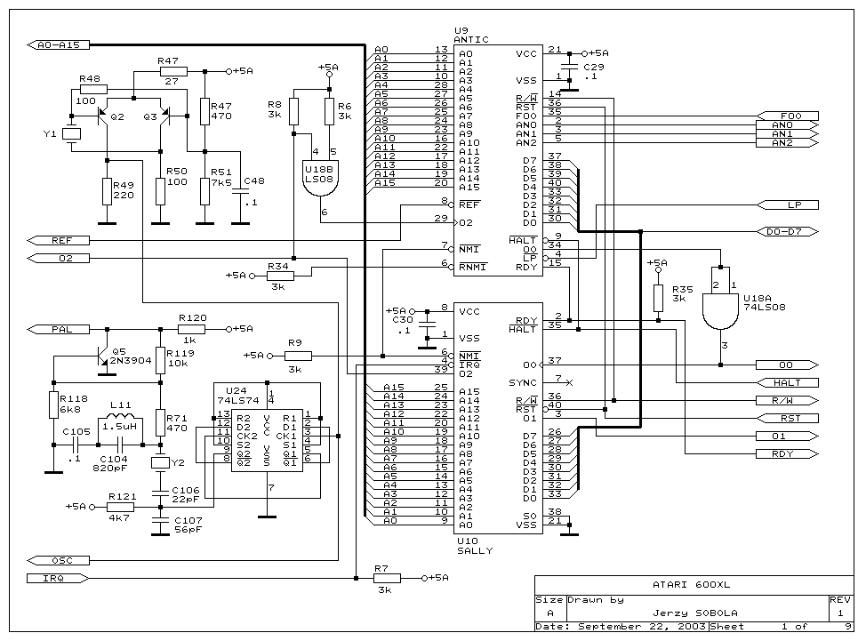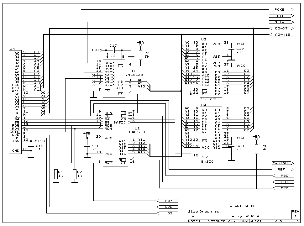 The 600 XL I have is an Ebay find from Canada. I bid $20 (US) on an Atari 600 XL of unknown condition and no power supply. My intentions are to basically use the XL as a test bed for various hacks. First I'll upgrade the RAM to 64K. Then use a USB power supply to replace the missing power supply. Then add Omnimon XL. Then add the composite video as TV (NTSC) output is getting harder to support. Then I'll design a replacement CPU daughter board. The replacement CPU is the 65816 and I'll add video SRAM for more than 64K of RAM. This will require me to modify the OS to support the new CPU (it differs in a few ways from the stock custom 6502C). None of the mods should damage the mother board or the chips. So returning it to stock is always possible.